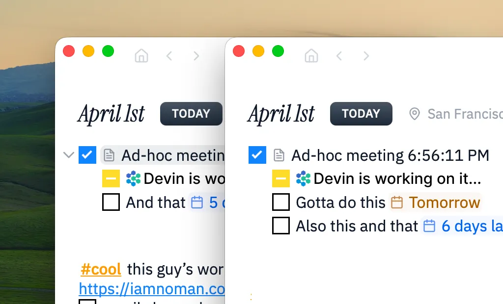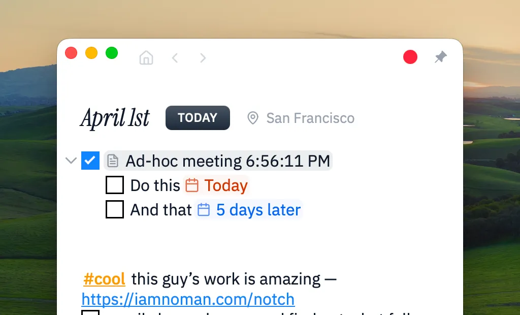 Daily notes are a timeline-based way of constructing episodic memory. I’m confident that triaging tasks will be far easier with rich context — I’ve learned this while building aipm and trialing tools like Modem. They fall short when they don’t have an evolving context, because they only echo loud signals which are often noise.